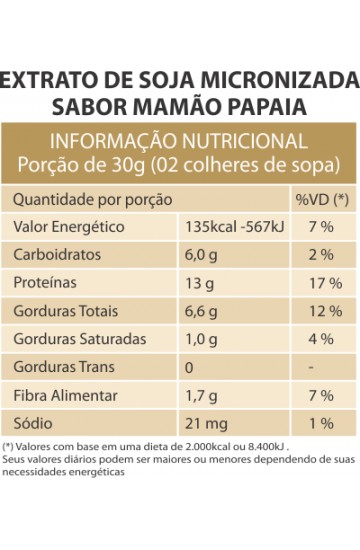 Produto 100% soja não contém colesterol, lactose, sacarose, caseína e glúten.