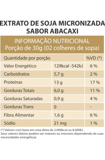 Com ou sem açúcar. Obtido a partir de grãos rigorosamente selecionados, submetidos a um trata-mento térmico, descascamento e micronização, mantém integralmente as características nutricionais do grão. Finíssima granulometria, elevada solubilidade, propriedades funcionais e nutricionais que melhoram a integri-dade estrutural dos produtos.