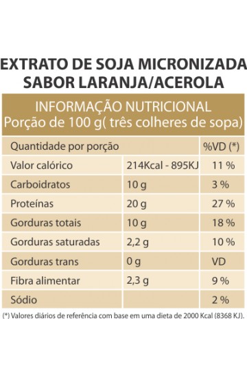 Produto 100% soja não contém colesterol, lactose, sacarose, caseína e glúten.