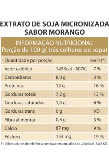 Produto 100% soja não contém colesterol, lactose, sacarose, caseína e glúten.
